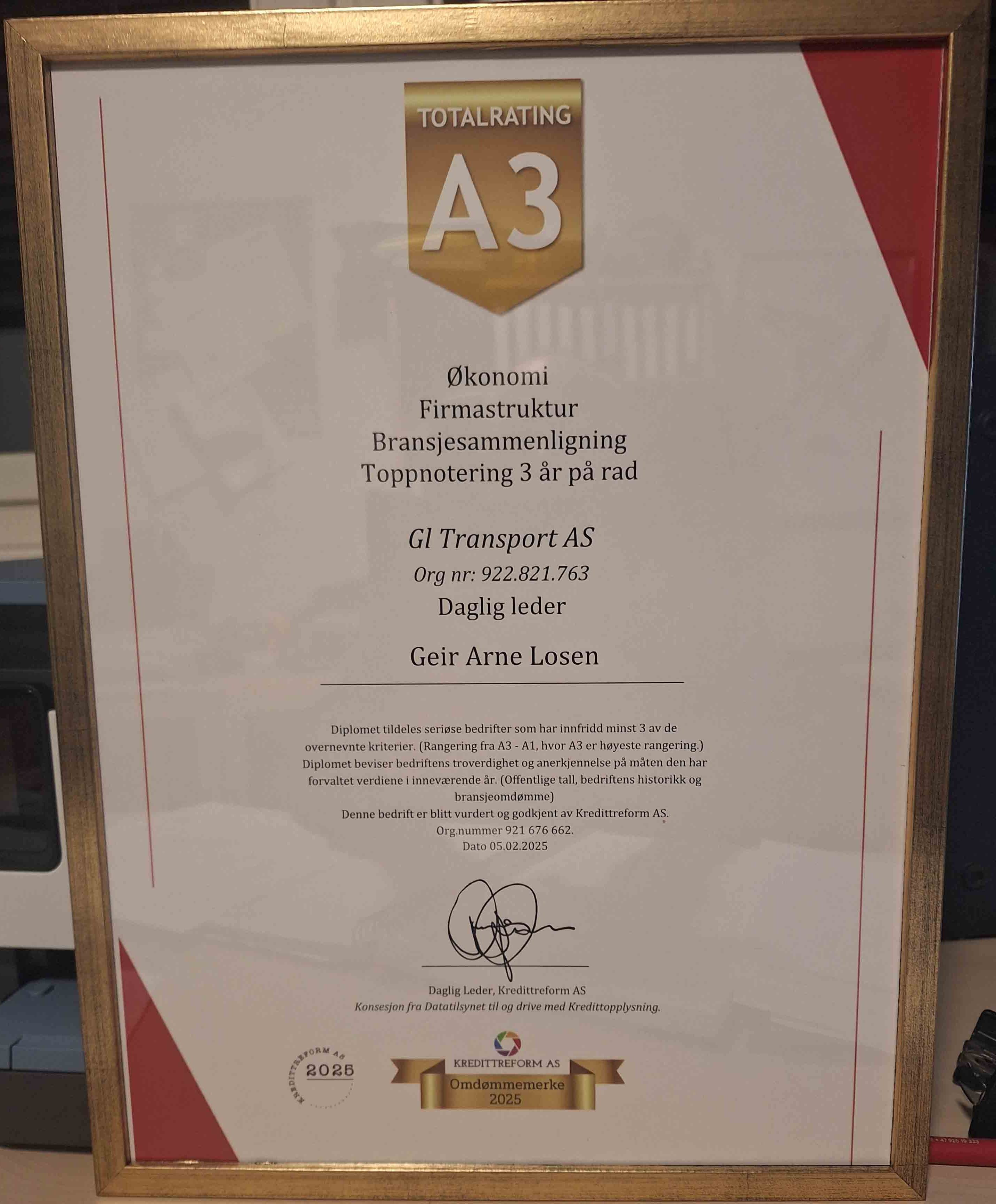 GL Transport AS er et ledende transportfirma som spesialiserer seg på å levere pålitelige og effektive transporttjenester i Klæbu og omegn.